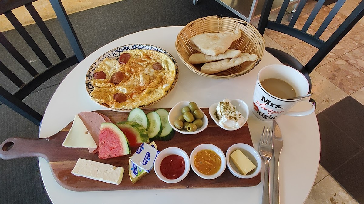 Nice atmosphere Good breakfast Clean place Good service Recommend it TURKISH BREAKFAST STYLE .